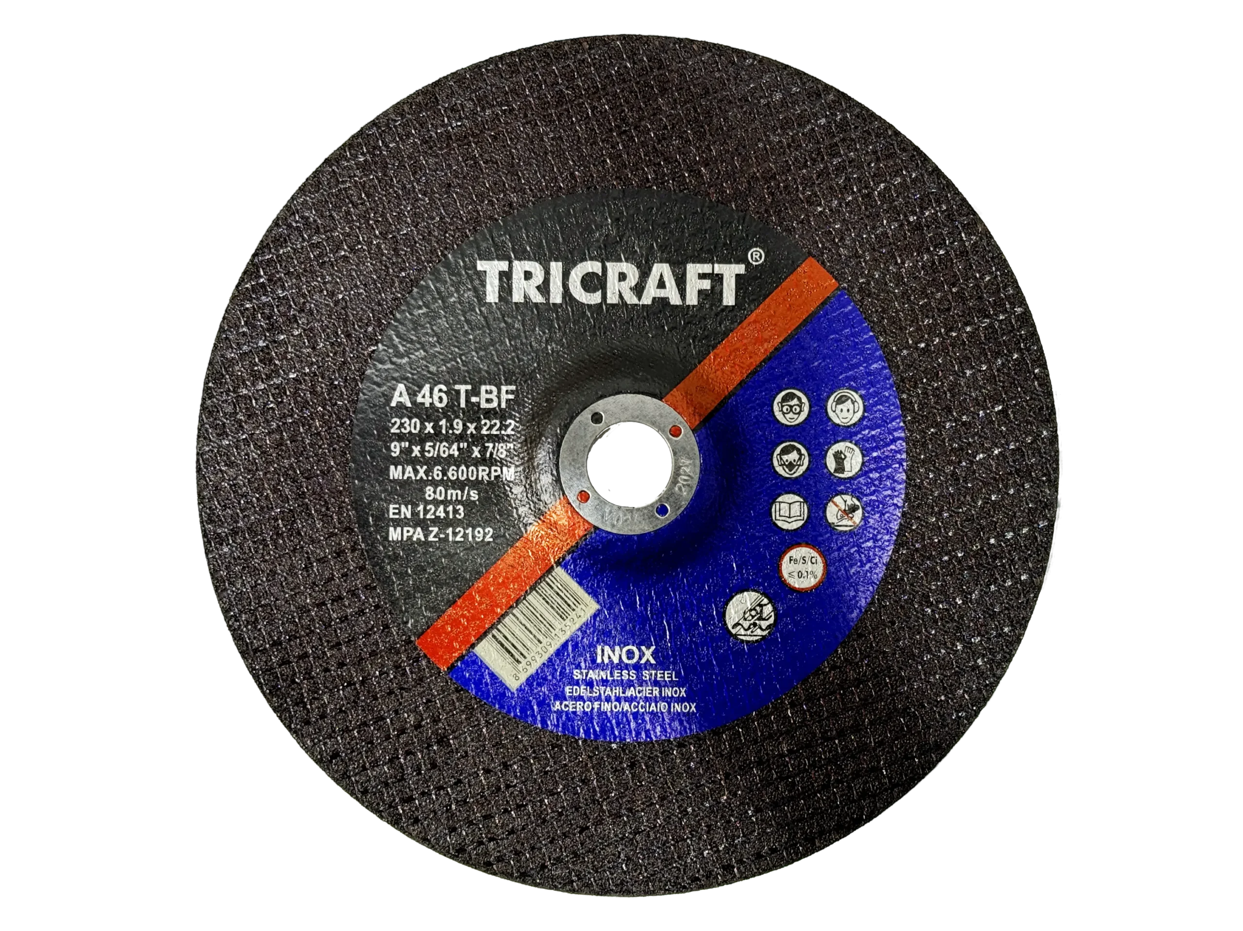 Tricraft Cut Off Wheels For PipeLine, Type 27 , use with Angle Grinder, 4″ to 9″ , 80M/S ,Application : pipeline root pass, weld and flame cut grinding