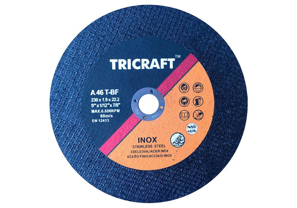 Tricraft  Ultra Thin Cutting Wheel & Discs for Inox and Stainless Steel  , Type 1 and Type 27 , use with Angle Grinder, 4″ to 9″ , 80M/S .